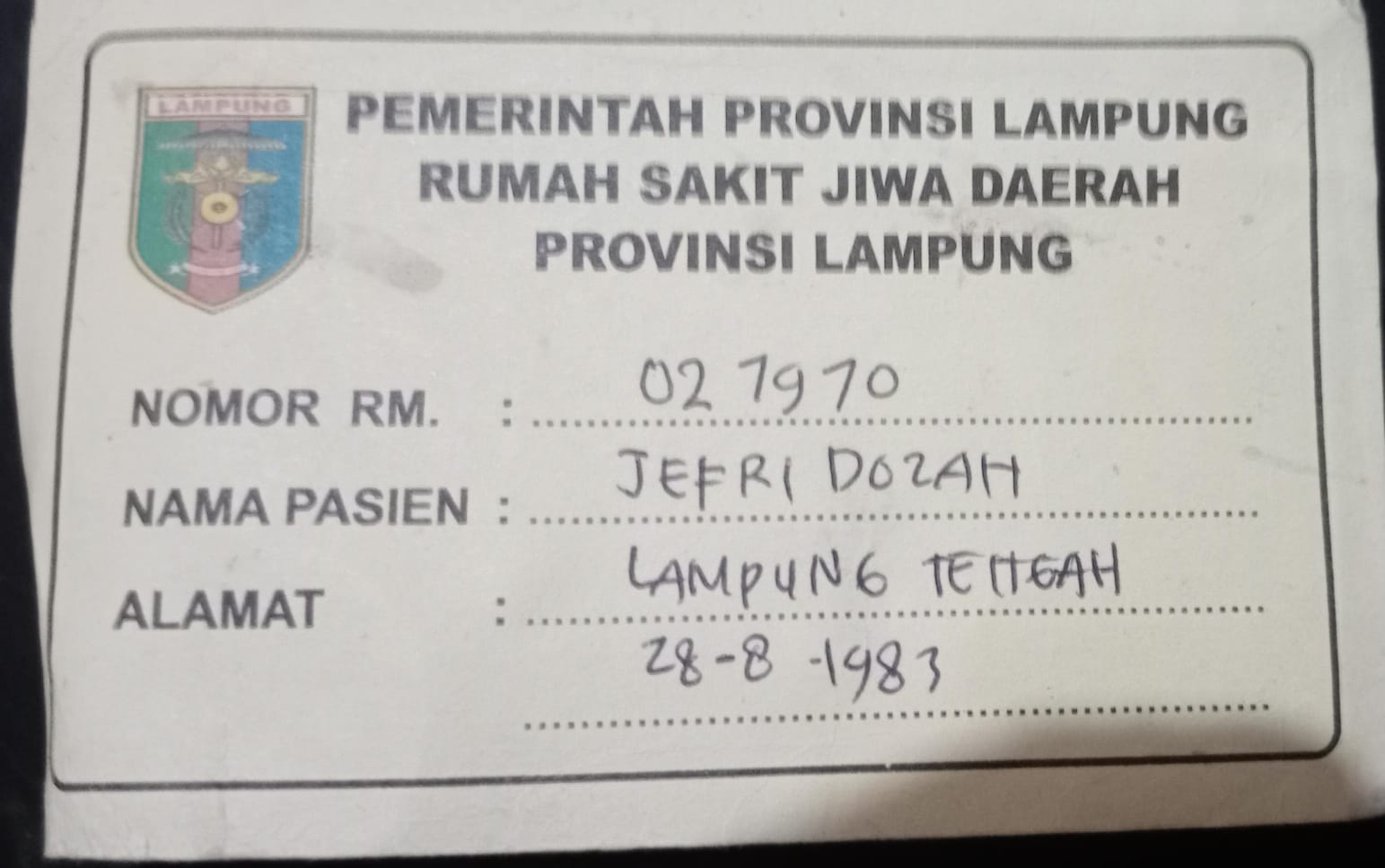 JD menurut Frengki sejak tahun 2004 mengalami gangguan kejiwaan dan sudah beberapa kali menjalani Rehabilitasi di RSJ Kurungan Nyawa Pesawaran. Sesuai kartu pasien RSJ Provinsi Lampung JD tercatat sebagai pasien : 02.79.70.