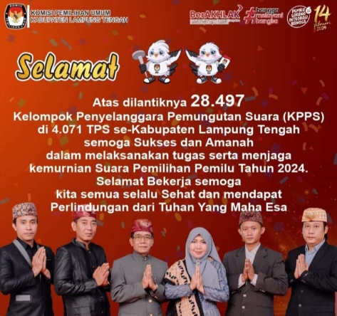 Pengukuhan KPPS dilakukan secara serentak di Lampung Tengah. Di Lamteng pada pemilu 2024 terdapat 28.497 KPPS dengan jumlah 4.071 TPS (Hengky Saputra).