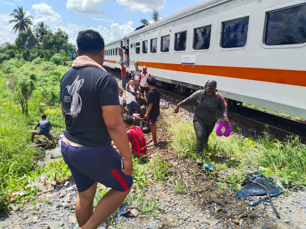 Saat itu melintas KA penumpang dari Lampung menuju Palembang. Sehingga tabrakan tidak dapat di elakkan.