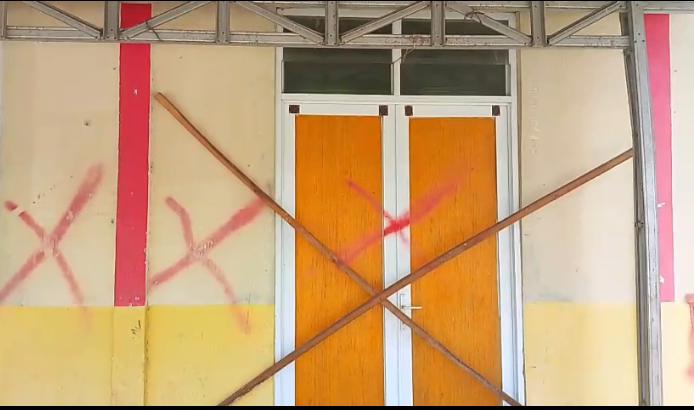 (Keterangan Gambar : Balai Kampung Gunungagung Masih Disegel Warga)