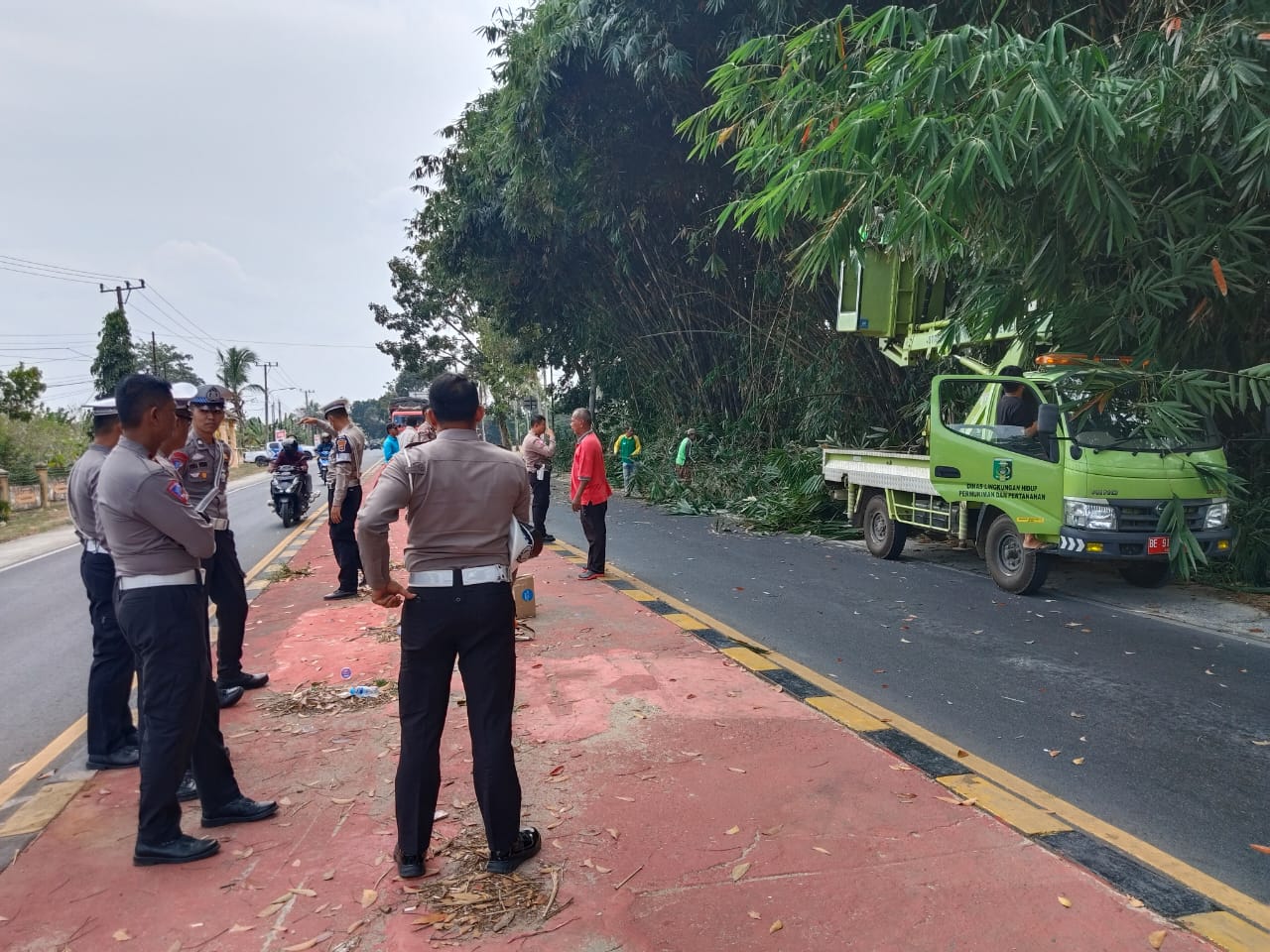 “Maka kami melakukan pemangkasan pohon tersebut dan kegiatan ini bersinergi dengan Dinas Lingkungan Hidup Lampung Timur. Bahkan, pemangkasan dahan pohon tersebut mendapat respon baik dari pengguna jalan," kata AKP Glen.