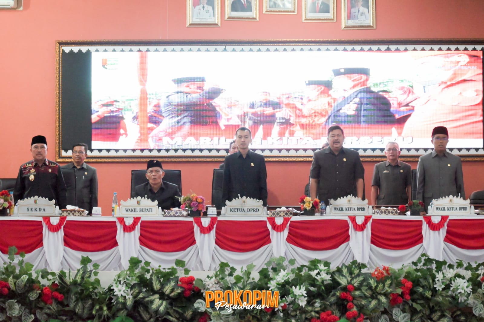 DPRD Kabupaten Pesawaran menggelar Rapat Paripurna dalam agenda Penyampaian Nota Pengantar 4 Rancangan Peraturan Daerah (Ranperda) Prakarsa DPRD Kabupaten Pesawaran. Kegiatan ini berlangsung di Ruang Sidang DPRD Kabupaten Pesawaran pada Senin (17/2/2025) dan dihadiri oleh Wakil Bupati Pesawaran Marzuki, Sekretaris Daerah Wildan, Ketua DPRD Achmad Rico Julian, para Kepala Perangkat Daerah,serta jajaran anggota DPRD Pesawaran.