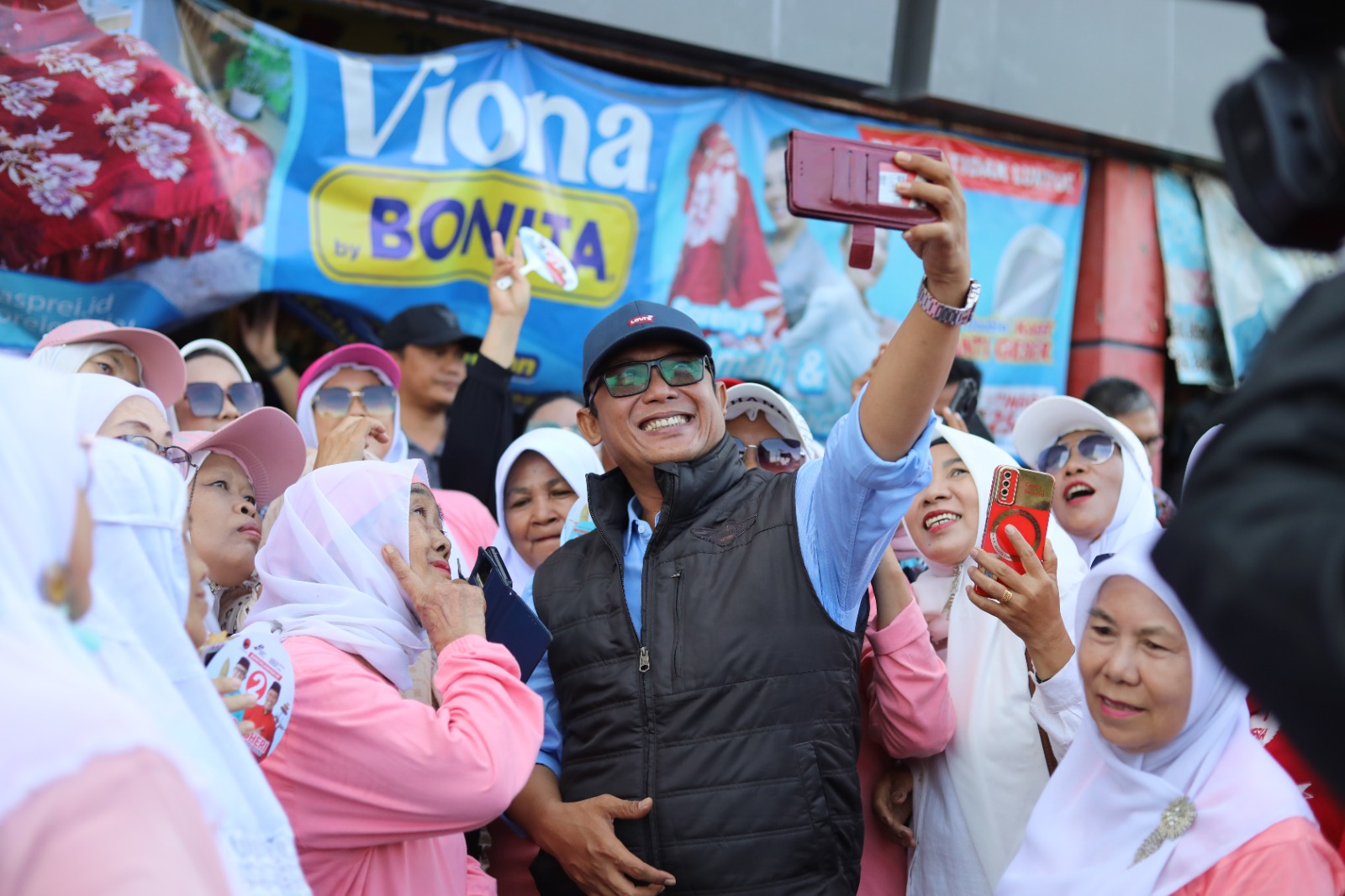 Calon Bupati nomor urut 02 dr. Ardito Wijaya bersama istri menyapa pedagang di Plaza Bandarjaya, Lampung Tengah, pada minggu (13/10/24).